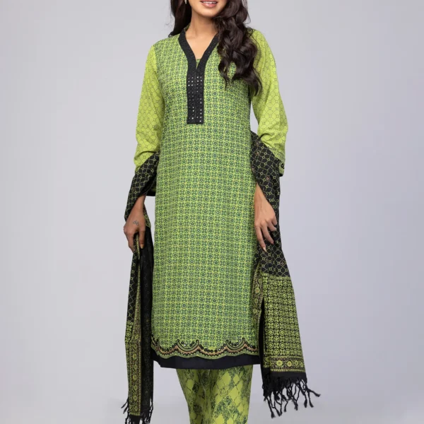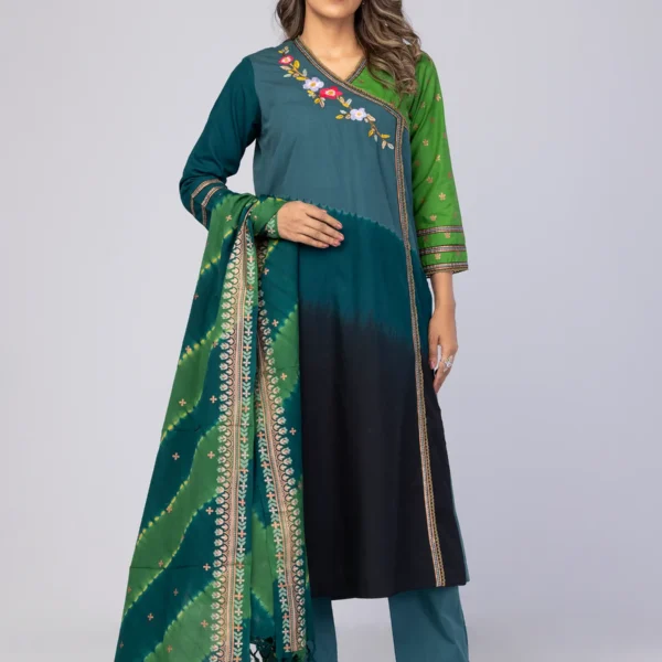 Bottle Green Printed and Embroidered Vortex-Cotton Shalwar Kameez