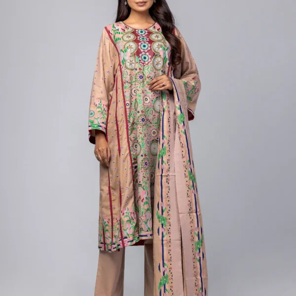 Beige Mughal Tropical Theme Cotton Lyocell Shalwar Kameez