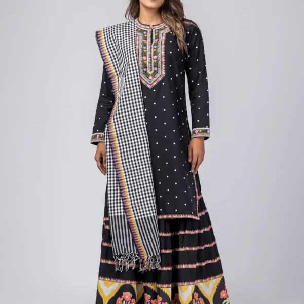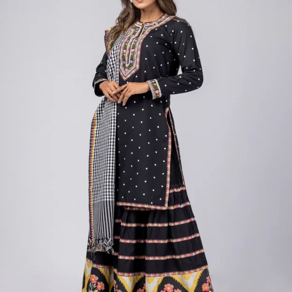 Black Embroidered Retro Print Theme Shalwar Kameez
