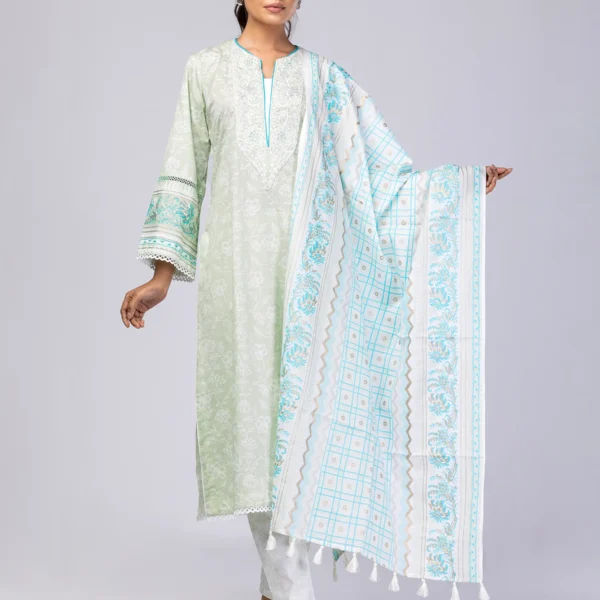 Light Mint Green Mugha Tropical Theme Shalwar Kameez
