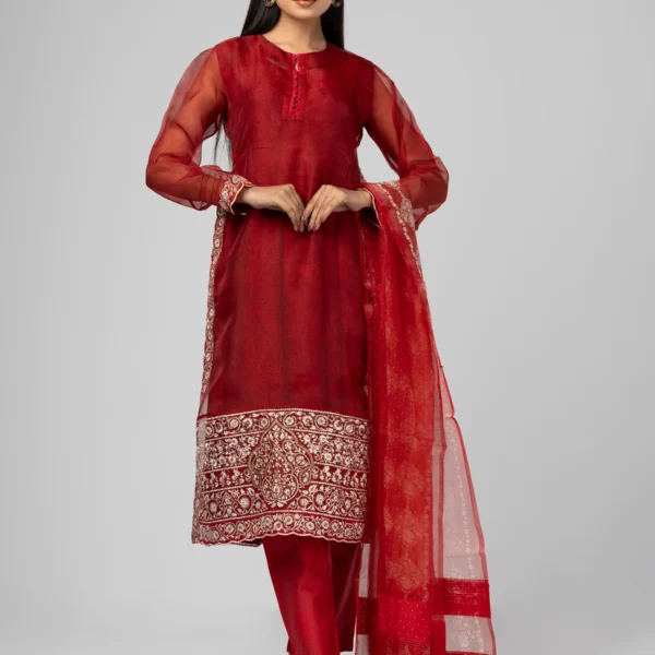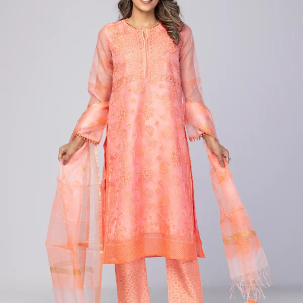 Peach Embroidered Jamawar Theme Shalwar Kameez